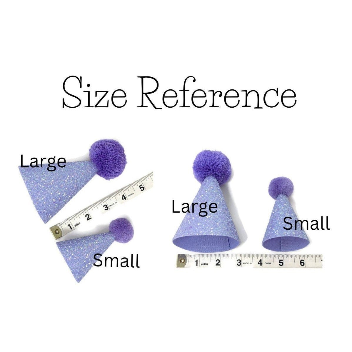 Our party hats are attached to a comfortable elastic and meant to be worn around the back of the head, behind the ears. Tilt to the side for a fun, whimsical look!