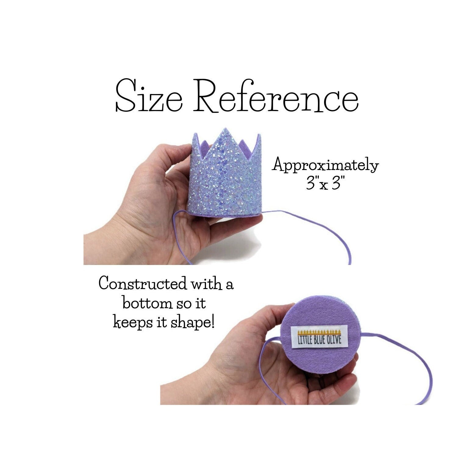 LITTLE BLUE OLIVE CROWNS and HATS are the perfect accessory for birthday celebrations, memorable photo shoots and every day fun for dress up. Hats are hand crafted of a high quality, non-shed glitter.