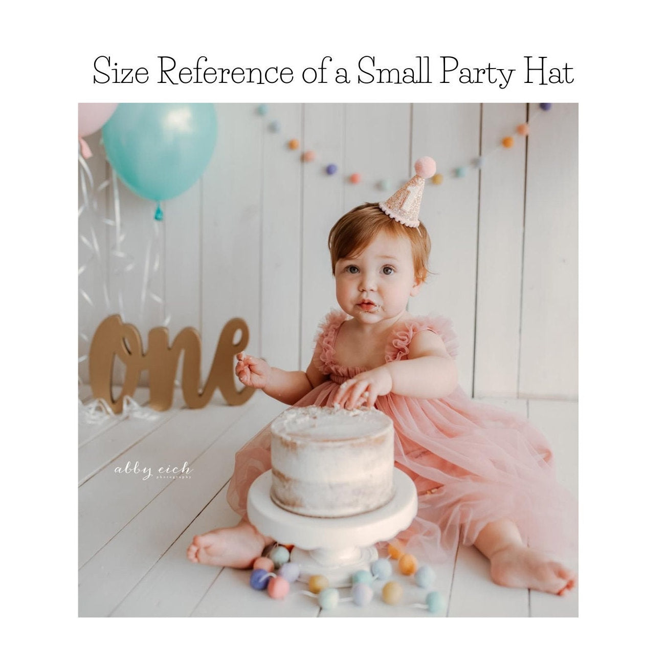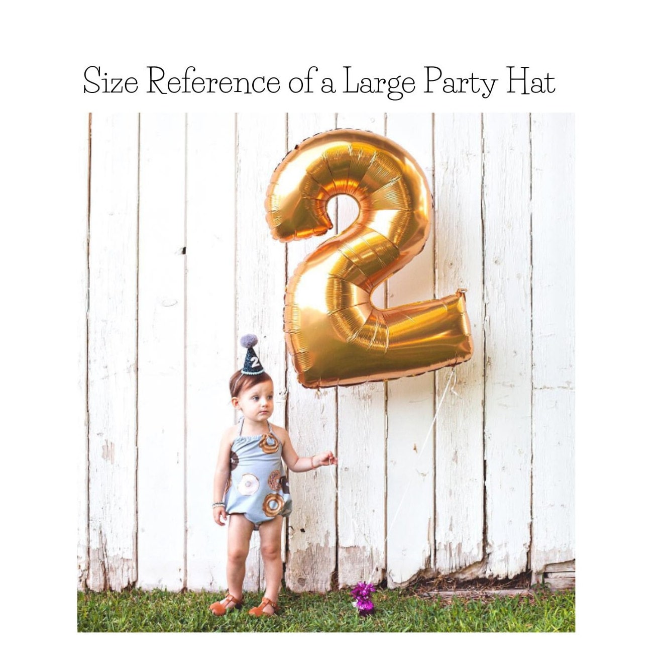 Our party hats and crowns are attached to a comfortable elastic and meant to be worn around the back of the head, behind the ears. Tilt to the side for a fun, whimsical look!